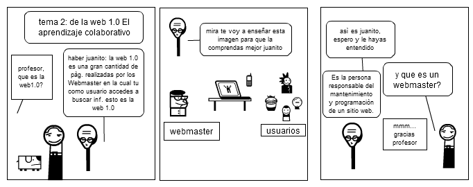 Caricaturas elaboradas por estudiantes de Educación del 2do semestre sobre su visión de la Web 1.0, 2.0 y 3.0
